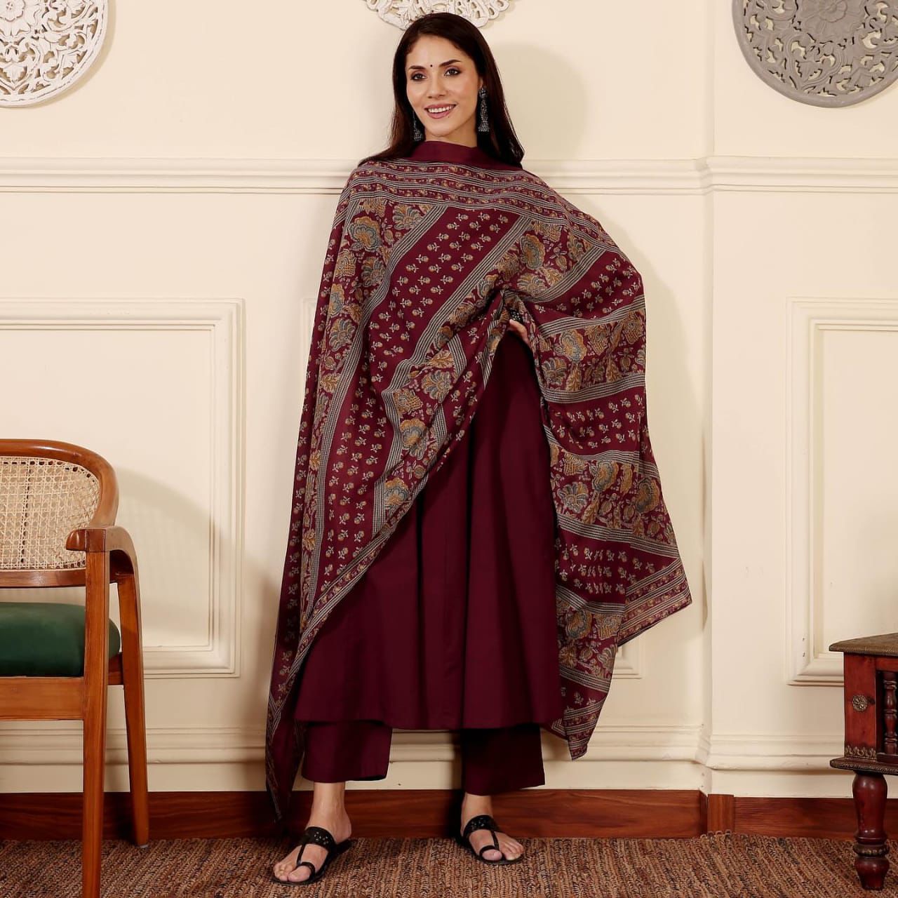 Elevate your ethnic wardrobe with this sophisticated rust brown kurta set, featuring an eye-catching abstract print that adds contemporary flair to traditional silhouettes. The flattering A-line cut provides comfortable movement while maintaining an elegant drape, making it ideal for festive occasions, casual gatherings, or everyday wear. Crafted with attention to detail, this versatile ensemble seamlessly transitions from day to evening, offering a refined aesthetic that celebrates modern Indian fashion sensibilities.